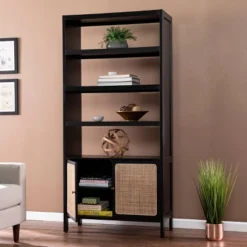 74″ Groveholme Bookcase/Storage Shelf Black/Gold – Aiden Lane