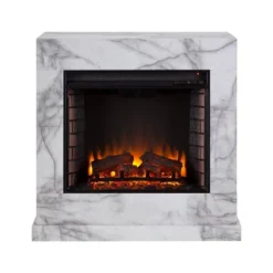 Highpoint Faux Cararra Marble Electric Media Fireplace White – Aiden Lane