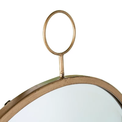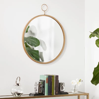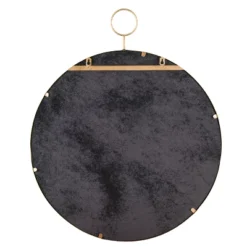 Bring home simple elegance with the Aiden Lane 27.5″ x 23″ Loris Decorative Wall Mirror Bronze. A circular frame and decorative hanger bring a touch of modern to your space, while the beveled center mirror adds function and classic style. Hang this sophisticated mirror above your entryway console as a versatile décor piece, or station in your living room to brighten your entertaining space. Put the finishing touch on your wall design with this sleek hanging mirror.