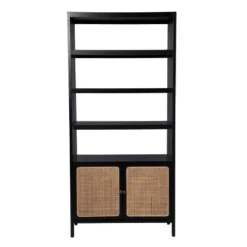 - Features 4 open shelves and 1 cabinet