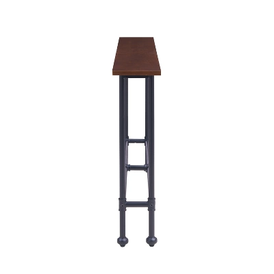 Make the most of your small space with the Aiden Lane Angelito Console Table Black. A metal base gives your living space an industrial feel, while the long tabletop provides display space for décor, books, or photos. Tuck this narrow console table neatly behind your sofa to keep your drink and the remote within reach, or slide into your entryway to welcome guests with potted plants or a vase of flowers. Bring bold style to your small space with this slim sofa table.