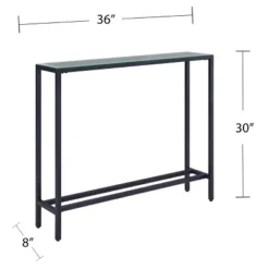 Save space without sacrificing style with the Aiden Lane Dillard Narrow Console Table. A narrow, mirrored tabletop offers enough room for framed photos and simple décor, while the skinny, space-saving frame tucks neatly into your entryway or against a wall. The functional, multipurpose design works throughout your home, maximizing small floorplans or defining your open concept space. Keep your living room or foyer simple and modern with this slim sofa table.