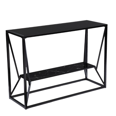 Sleek style goes anywhere with the Aiden Lane Finsfil Long Glass-Top Console Table. A long, faux marble display shelf houses décor pieces or your favorite books, while the spacious tabletop holds a set of table lamps and family photos. Ideal for your living room or entryway, this black sofa table adds extra storage without sacrificing valuable space. Give your small space or open floorplan a modern twist with this narrow console table.
