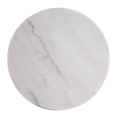 Bring chic style to small spaces with the Aiden Lane Galatea Ivory Marble Side Table Champagne. A unique tripod frame adds a touch of modern to your entertaining space, while an authentic marble tabletop provides display space for framed photos or décor. Tuck this marble-top accent table beside your living room sofa to hold a reading lamp and your favorite novel, or place in your open concept living space to show off a selection of potted plants. Enjoy function and style when you bring home this two-tone marble accent table.