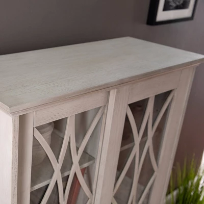 Storage gets a stylish upgrade with the Aiden Lane Poyau Sliding-Door Cabinet. Interior shelves organize everything from guest linens to collectible knickknacks, while sliding cabinet doors offer a unique, window-inspired look. Perfect in your hallway or small space living area, this tall cabinet adds traditional design and rustic flair to almost any space in your home. Put clutter in its place with this double-door storage cabinet.