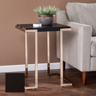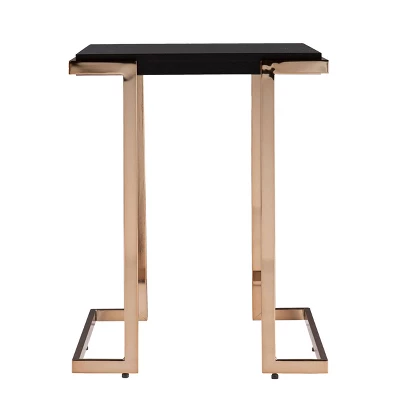 Bring contemporary flair to your home with the Aiden Lane Sanlos Side Table. A geometric base adds sleek color to your modern space, while the spacious faux shagreen tabletop elegantly holds a reading lamp and your favorite book. Place this small space end table alongside your living room sofa, or tuck into your reading nook for a convenient tabletop where you need it most. Sophisticated style comes home with this two-tone accent table.