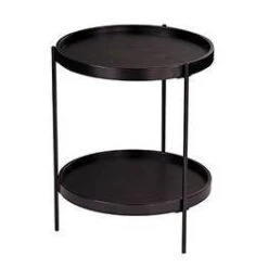 Take your rustic style to farmhouse chic with the Aiden Lane Vermicelli Round Farmhouse Style End Table. A faux tray tabletop and lipped shelf keep décor and your morning cup of coffee in line, while a stacked design takes advantage of vertical storage. A sleek black finish highlights this round end table’s modern design, and slender metal legs ground your minimalist look. Pair this storage side table with a table lamp and your favorite book to upgrade your reading nook, or slide alongside your living room sofa to store everyday essentials within reach.